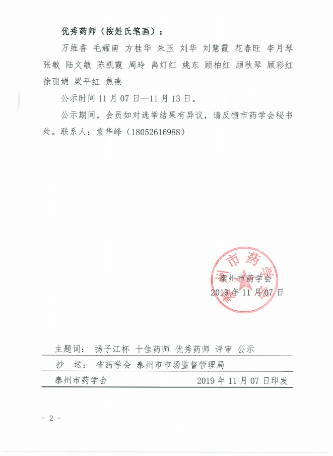 泰州市药学会举办2019年“扬子江杯”十佳药师、优秀药师评选会