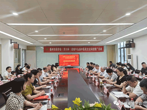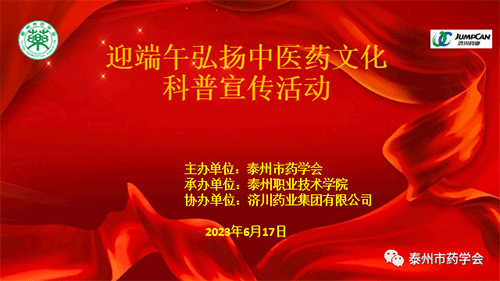 6月17日上午,泰州市药学会在泰州职业技术学院开展“迎端午弘扬中医药文化”科普宣传活动。泰州市药学会理事长周继红,济川药业集团有限公司区域学术经理,药学会副理事长宗琴,泰州职业技术学院药学院院长,药学会药品生产专委会副主委王立中,全市医院药学部(药剂科)主任、学会医院药学、中药学专委会负责人以及40多名药学科技工作者参加了活动。泰州市药学会袁华峰副秘书长主持了本次活动。