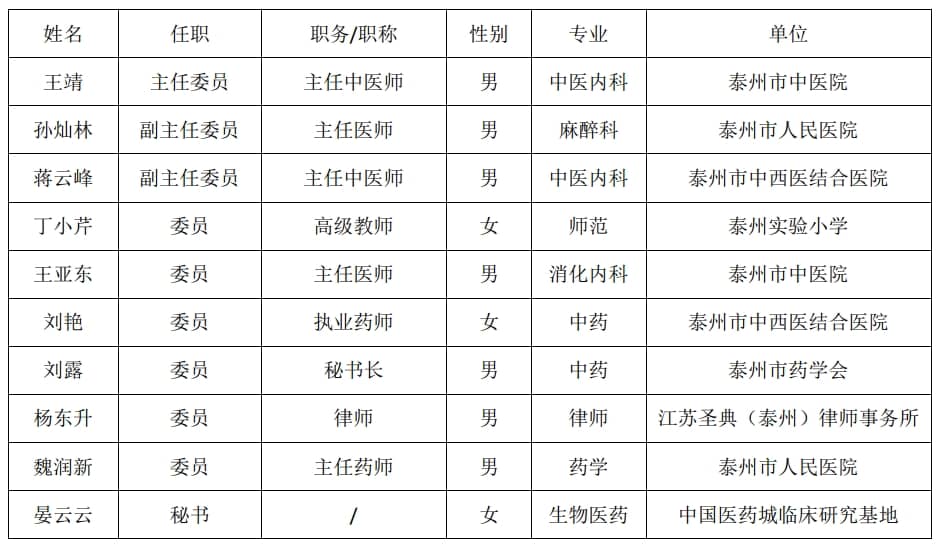 中国医药城临床医学伦理委员会成员名单